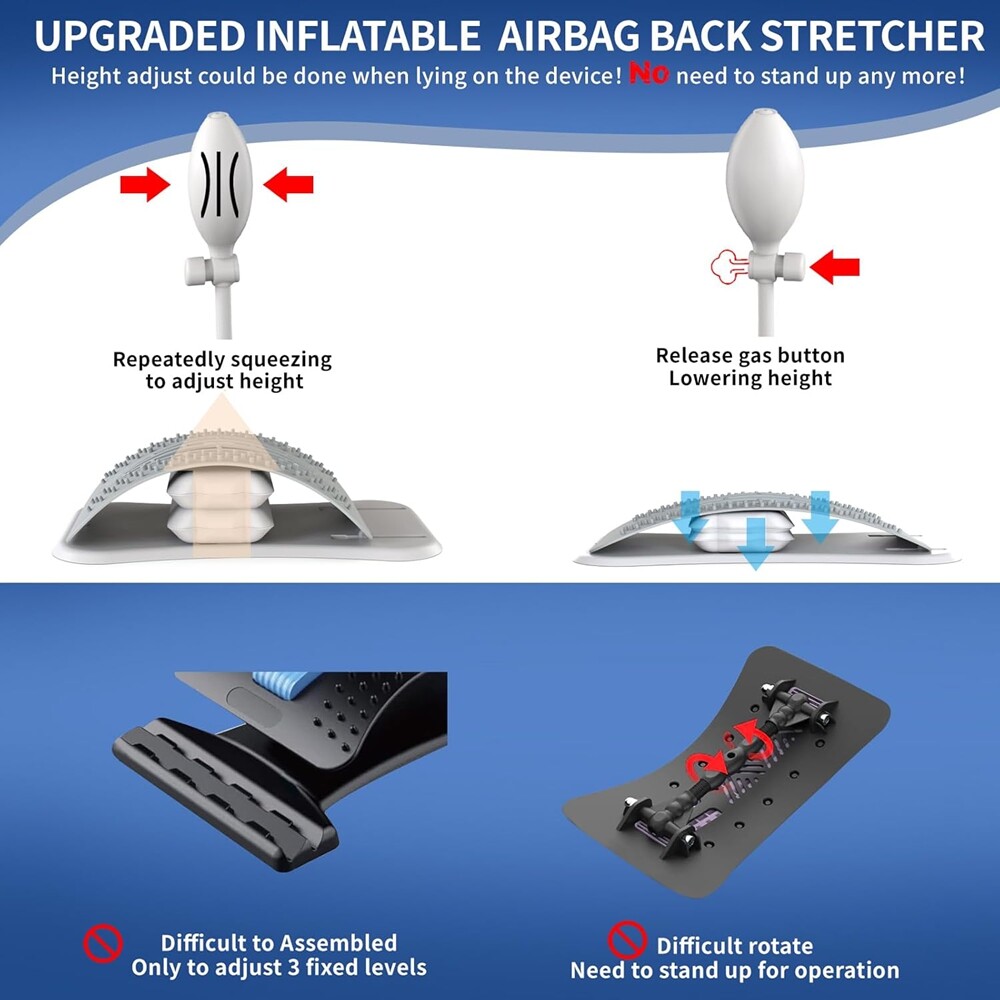 No more struggling with preset stretch levels. The Back Magic Stretcher now features an easy-squeeze handle and quick-deflate button, giving you full control over your stretch. Adjust the arc effortlessly to match your comfort level and body shape—whether you need a deep spinal lift or a gentle daily unwind.